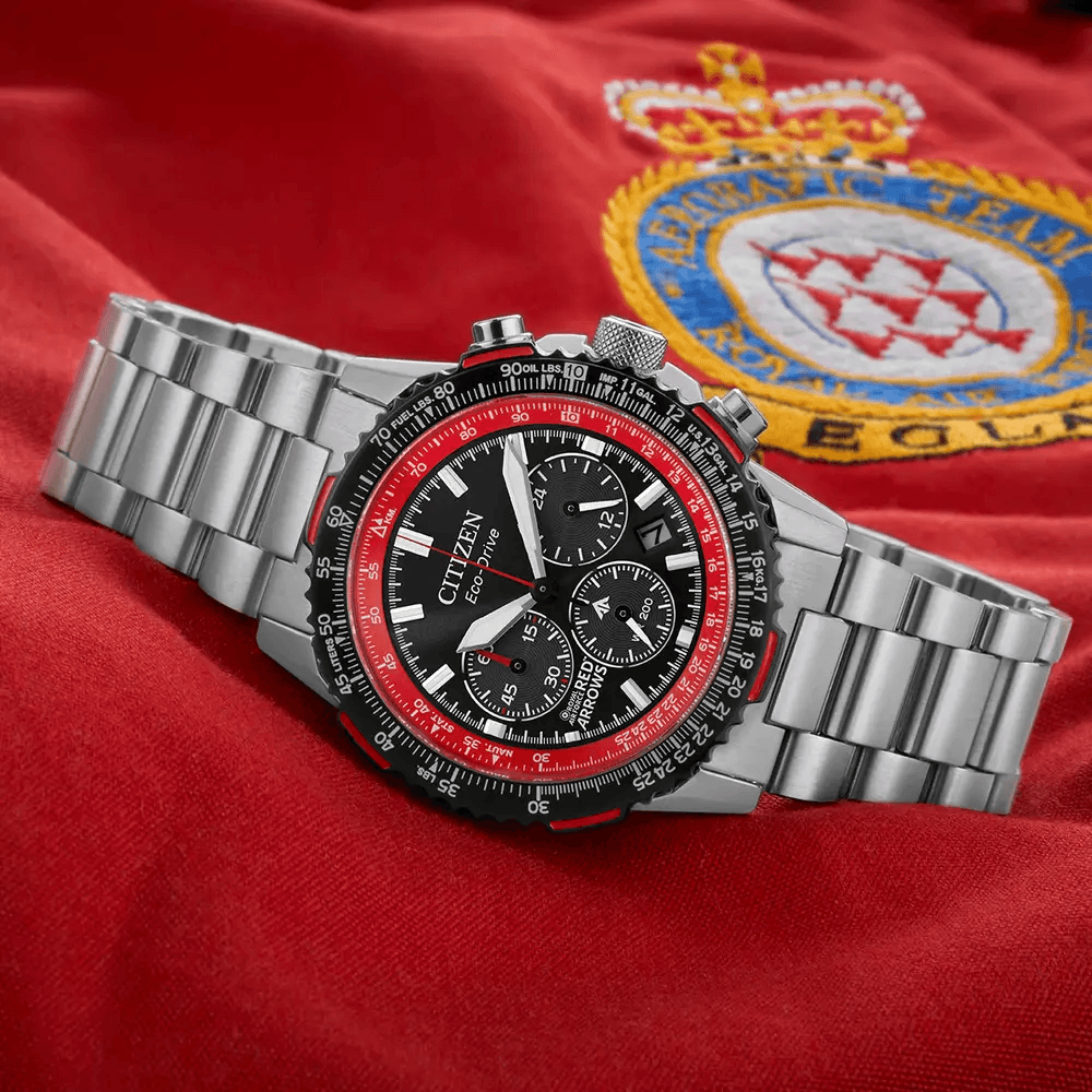 The stainless steel bracelet with fold over clasp ensures secure, comfortable wear. With 200 metres of water resistance, the Promaster Air Navihawk withstands demanding environments with absolute reliability. Powered by Citizen’s pioneering Eco-Drive movement, it converts any light source into energy and never requires a battery replacement. Backed by a 5 year guarantee, the Citizen Promaster Air Navihawk is engineered for durability and superior functionality.