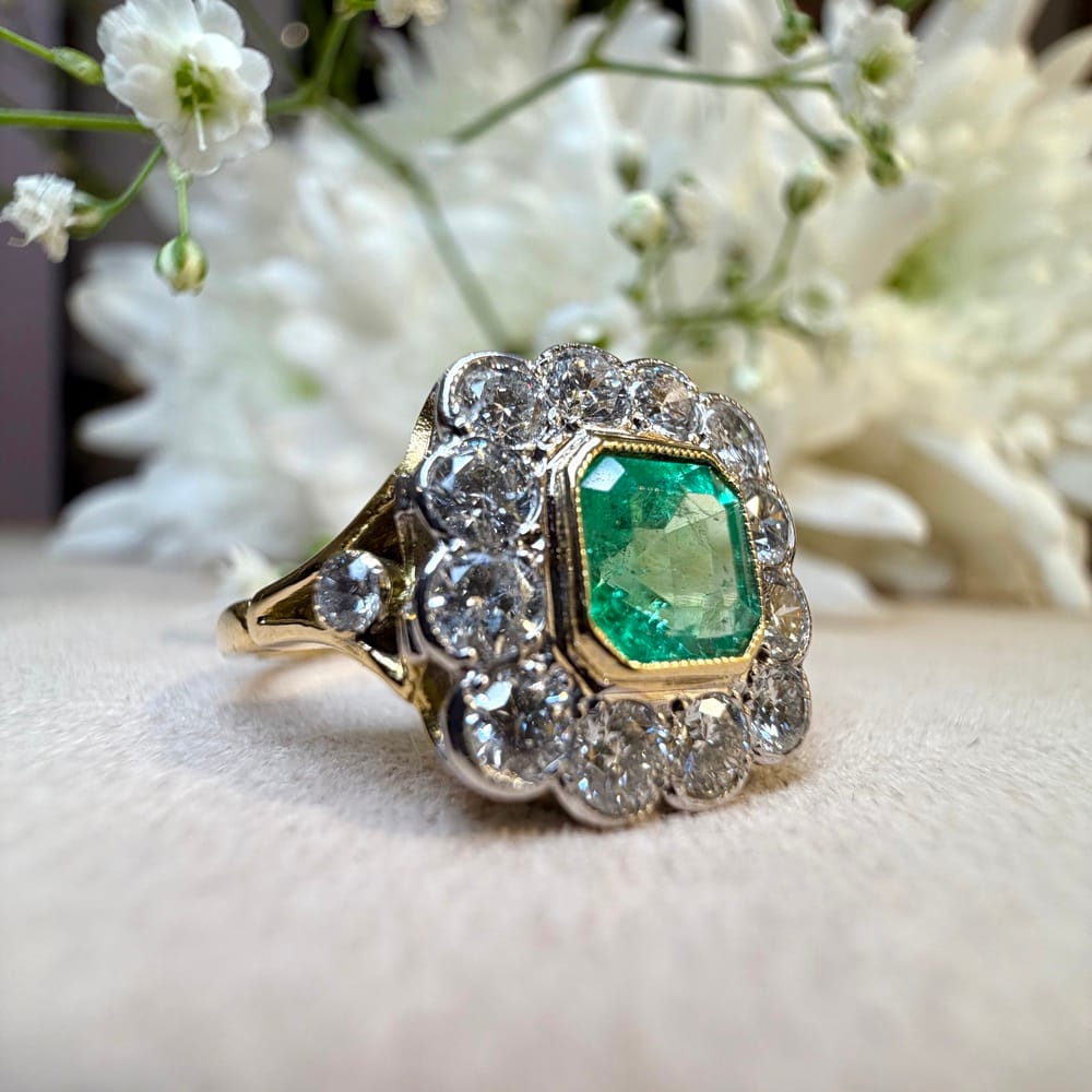 Second Hand 18ct Yellow Gold 1.60ct Emerald & Diamond Ring