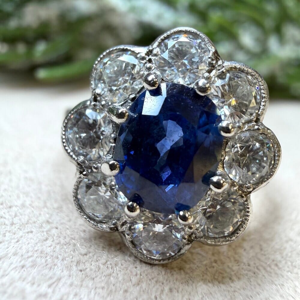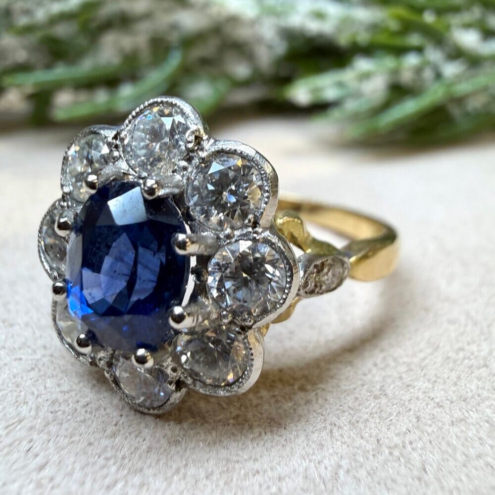 Second Hand 18ct Yellow Gold Sapphire & Diamond Cluster Ring