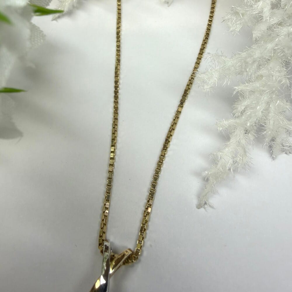 Second Hand 9ct Yellow and White Gold Diamond ‘KISS’ Pendant on Chain